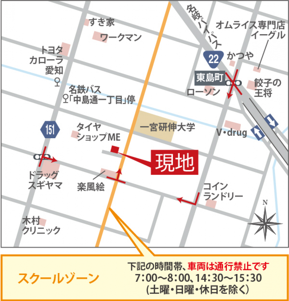 ・所要時間は地図上の概測距離を80m=徒歩1分、250m=自転車1分で計算したものです。