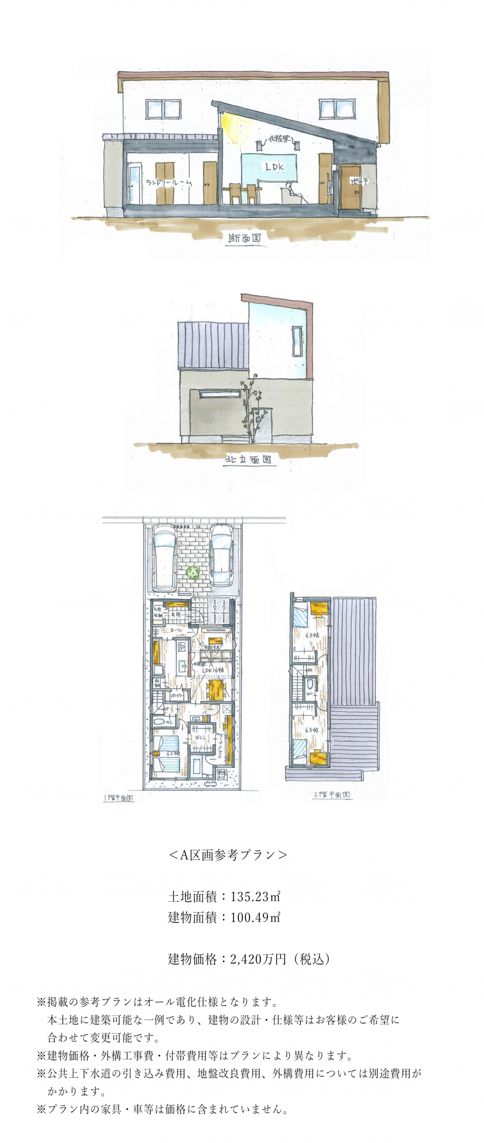 ・公共上下水道、都市ガスの引き込みについては別途費用がかかります。