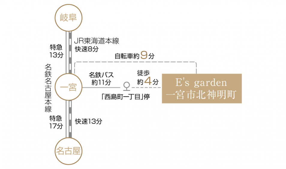 ・JR東海道本線・名鉄名古屋本線「一宮総合」駅 自転車約9分