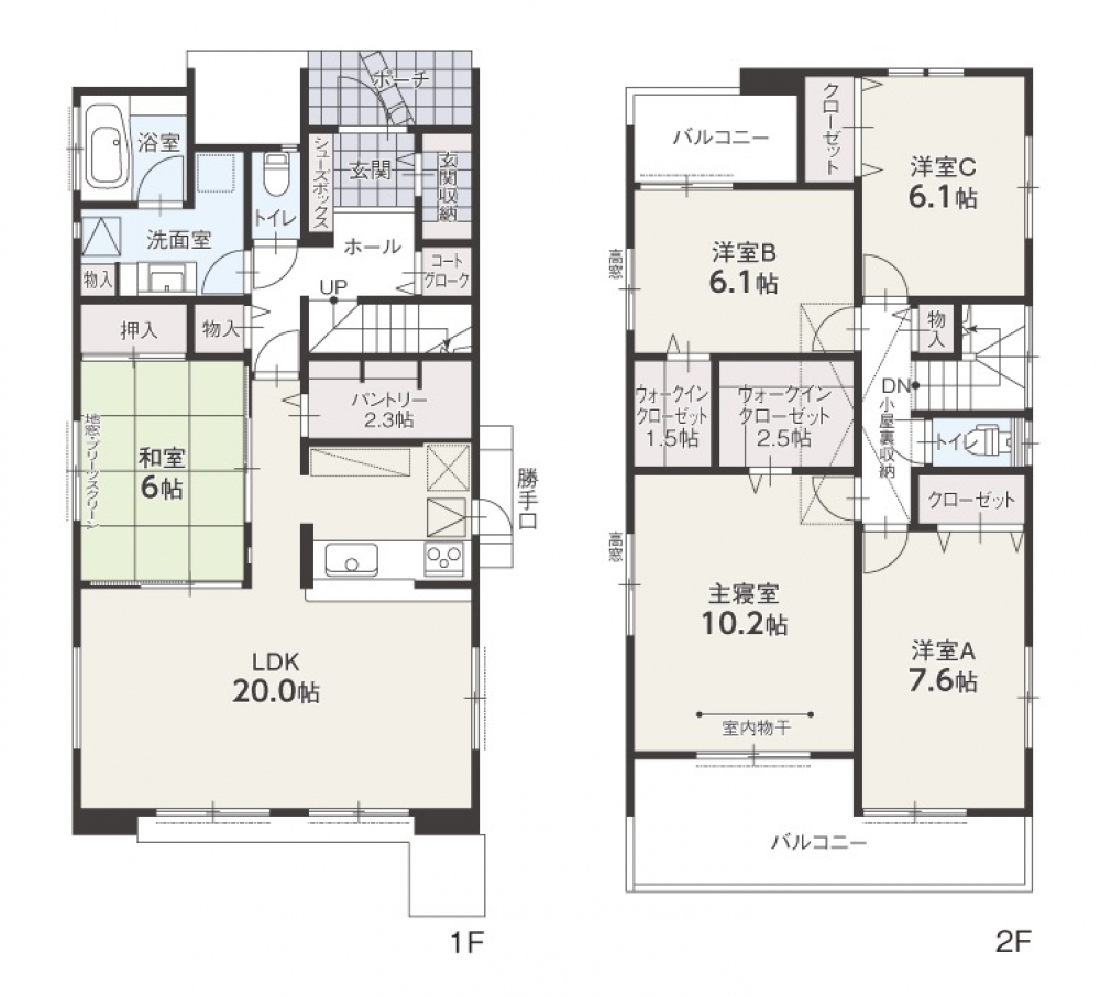 - 間取り:5LDK+ Wウォークインクローゼット+ 玄関収納+ コートクローク+ パントリー