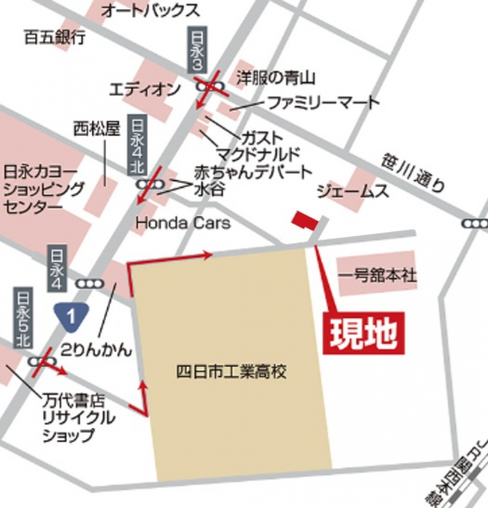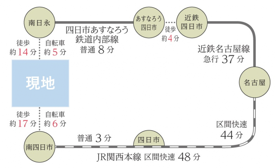 ■JR関西本線「南四日市」駅 約1,360m、四日市あすなろう鉄道内部線「南日永」駅 約1,050m