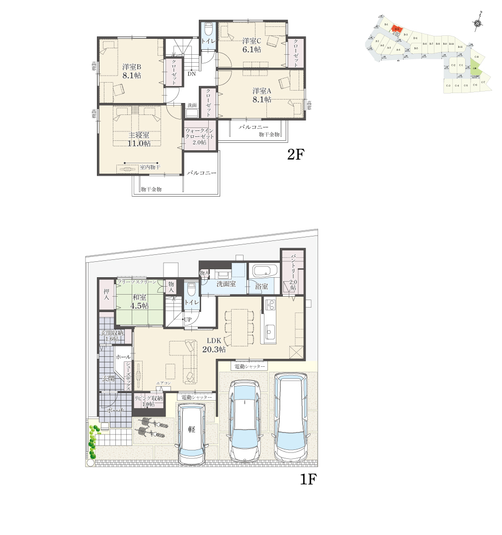 ・駐車台数は、区画図または各間取り図に表示の自動車サイズを想定しております。車種によっては駐車台数が異なる場合があります。