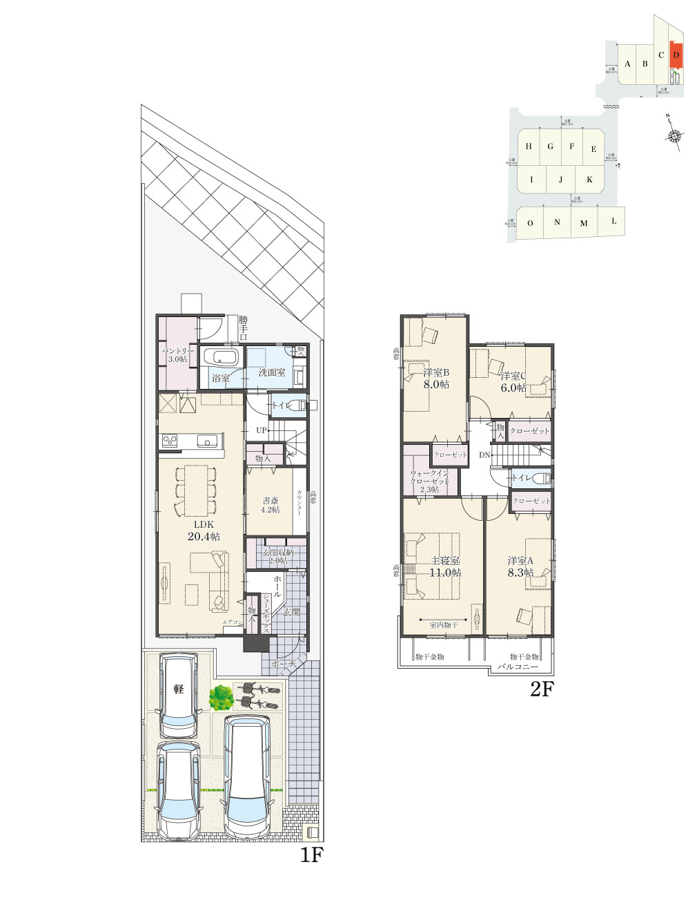・駐車台数は、区画図または各間取り図に表示の自動車サイズを想定しております。車種によっては駐車台数が異なる場合があります。