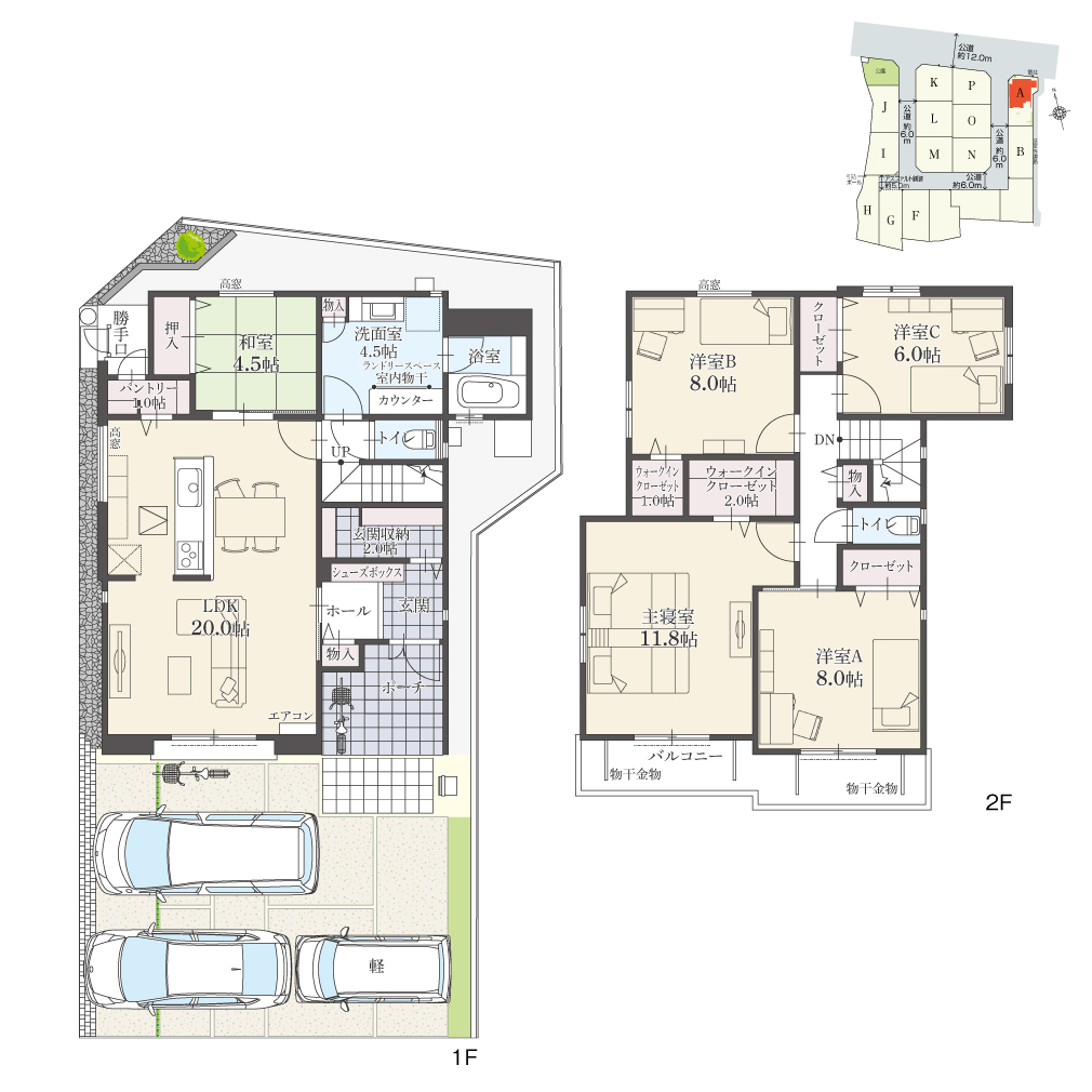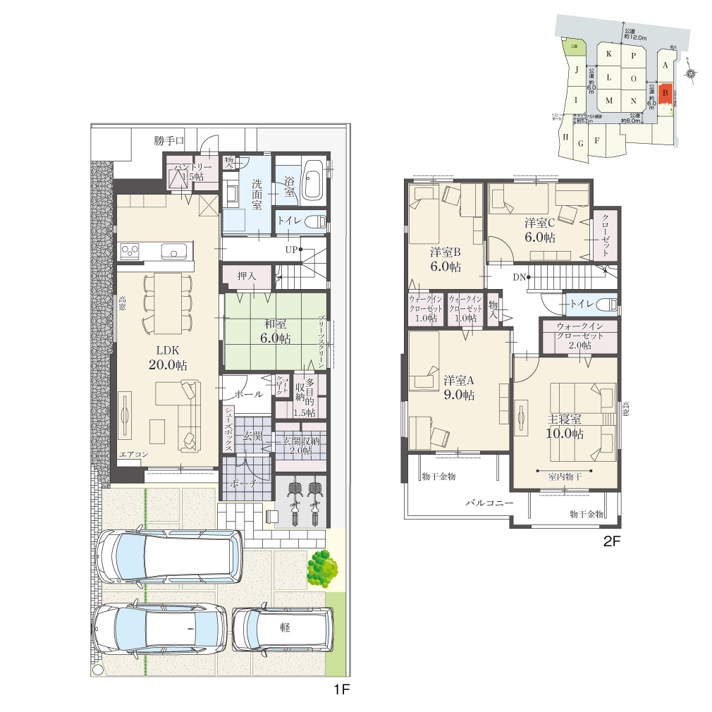 ・駐車台数は、区画図または各間取り図に表示の自動車サイズを想定しております。車種によっては駐車台数が異なる場合があります。