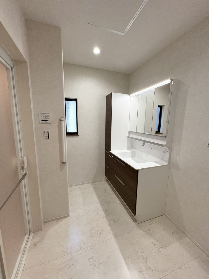 お掃除ラクラク、鏡の後ろにもたっぷり収納できるシャンプードレッサー。