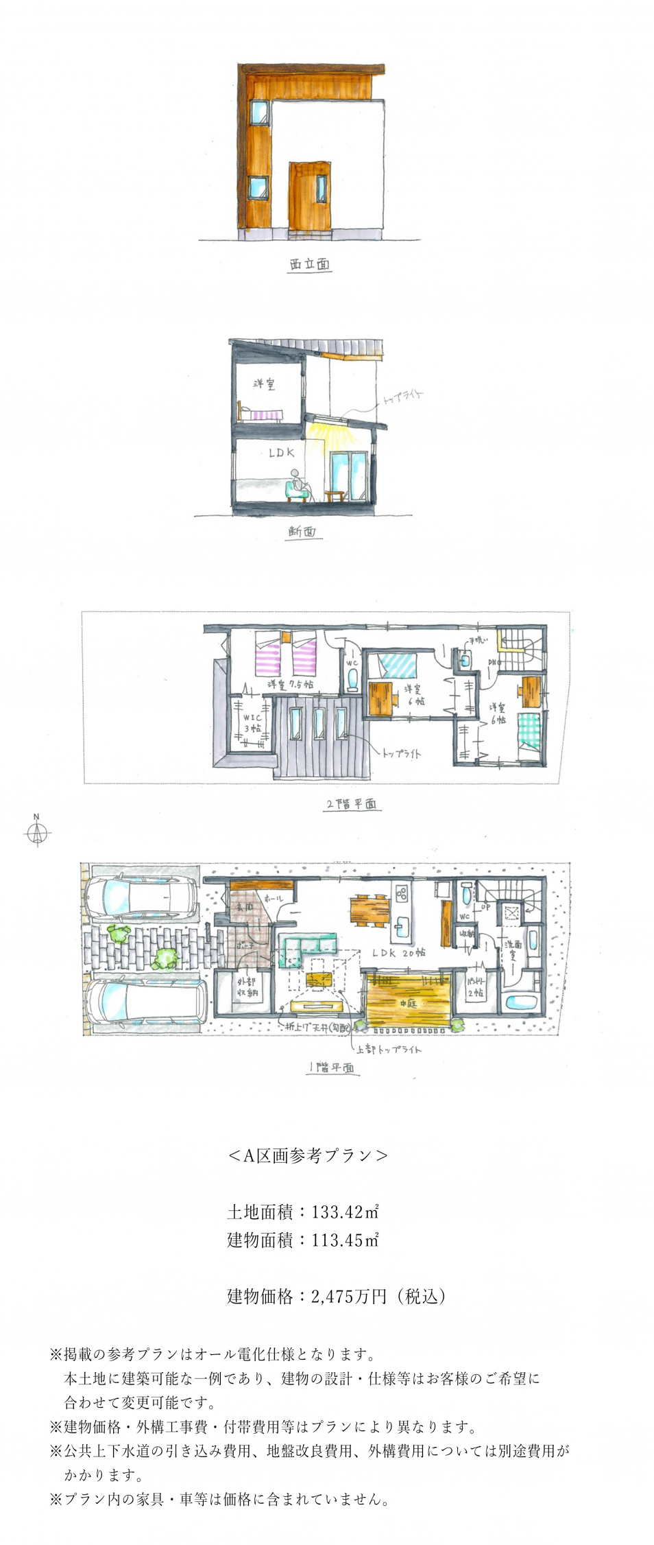 ・公共上下水道、都市ガスの引き込みについては別途費用がかかります。
