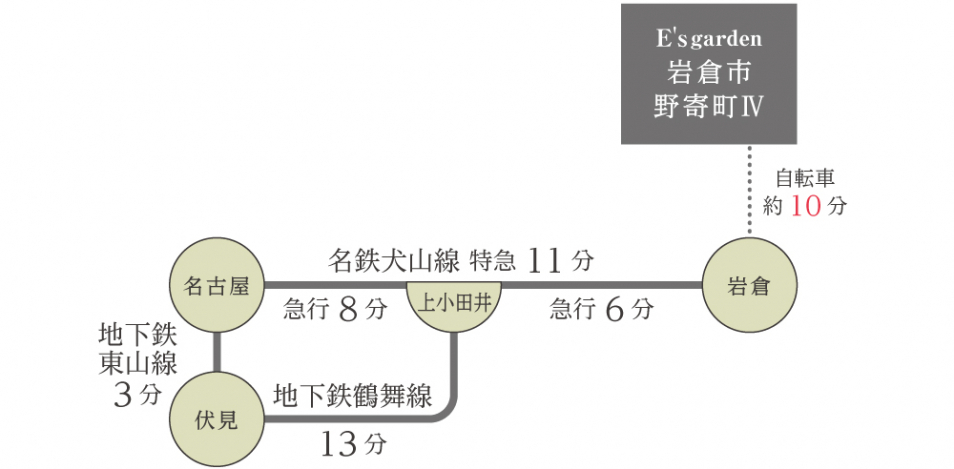 | 名鉄犬山線「岩倉」駅 | 約2,300m 自転車約10分 |