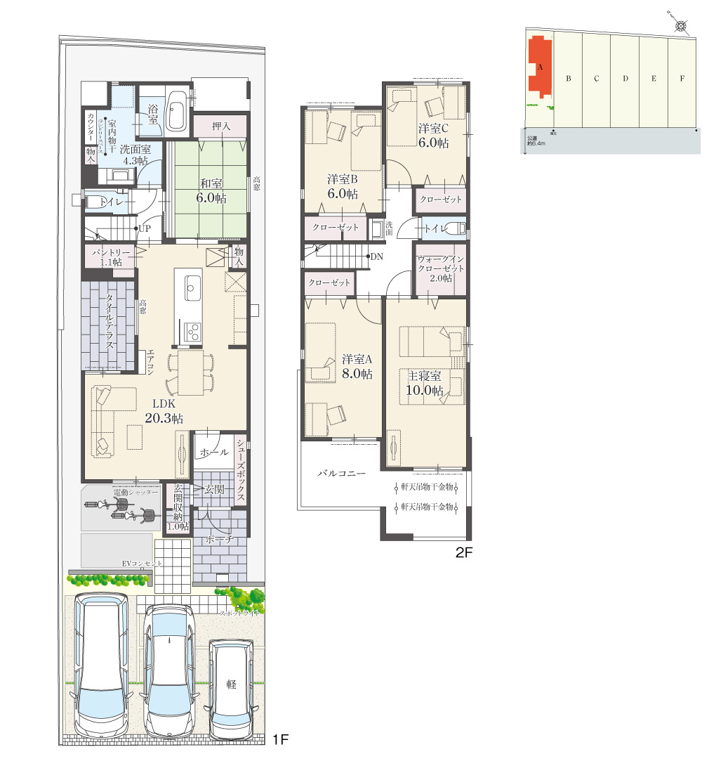 ・駐車台数は、区画図または各間取り図に表示の自動車サイズを想定しております。車種によっては駐車台数が異なる場合があります。
