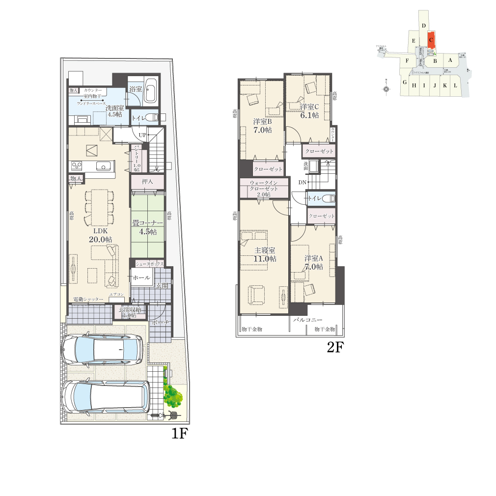 ・駐車台数は、区画図または各間取り図に表示の自動車サイズを想定しております。車種によっては駐車台数が異なる場合があります。