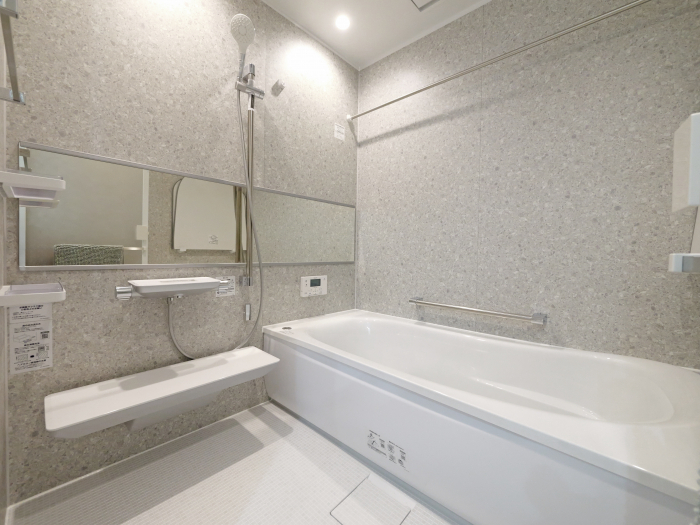 少し大きめ1717(1坪)サイズ。バリアフリー仕様のシステムバス。保温材付きの魔法びん浴槽。お掃除ラクラクほっカラリ床。