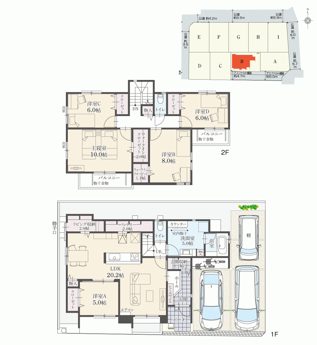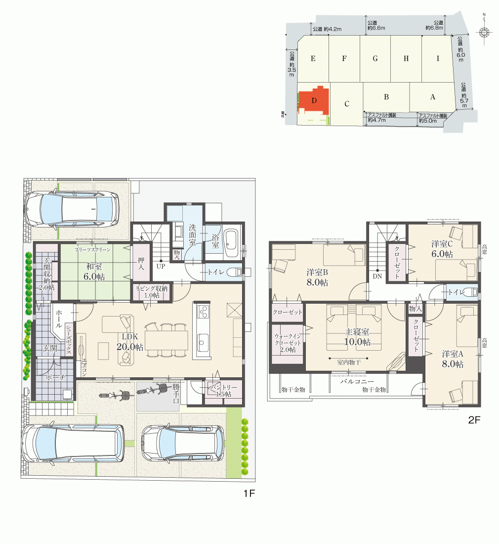 ・駐車台数は、区画図または各間取り図に表示の自動車サイズを想定しております。車種によっては駐車台数が異なる場合があります。