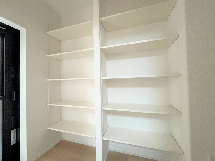 タオルや着替え、洗剤のストック品など何でも収納できる大きな物入。