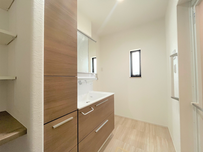 お掃除ラクラク、鏡の後ろにもたっぷり収納できるシャンプードレッサー。