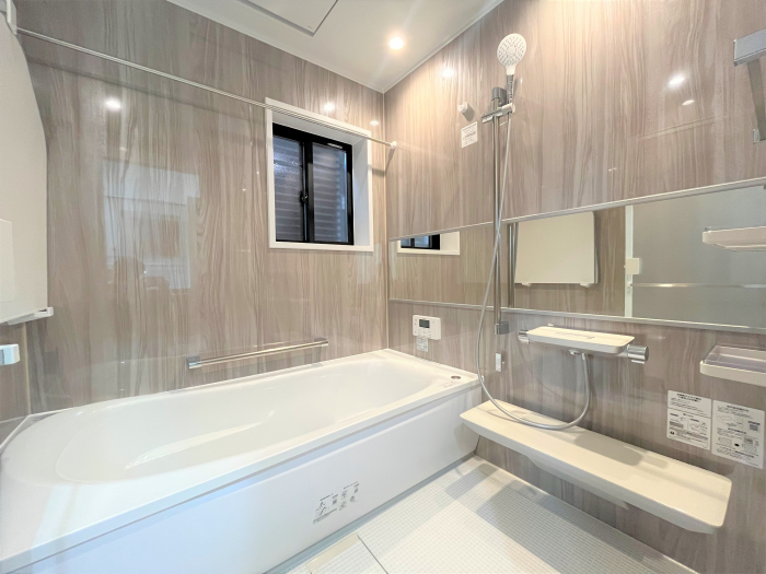 少し大きめ1717(1坪)サイズ。バリアフリー仕様のシステムバス。保温材付きの魔法びん浴槽。お掃除ラクラクほっカラリ床。