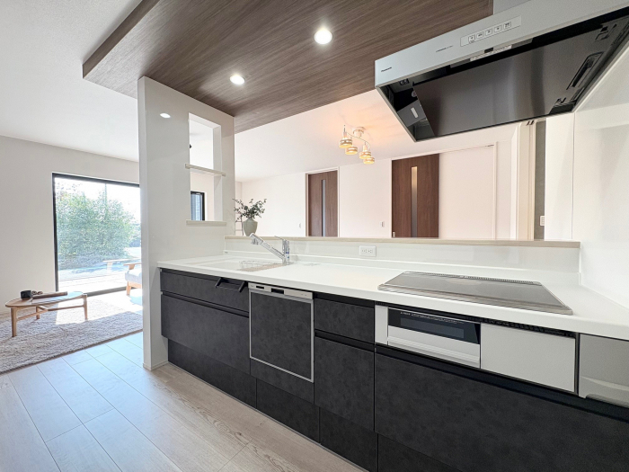 目地の少ない大判パネルでお手入れ簡単。キズに強く、がんこな油汚れもサッとひと拭き。