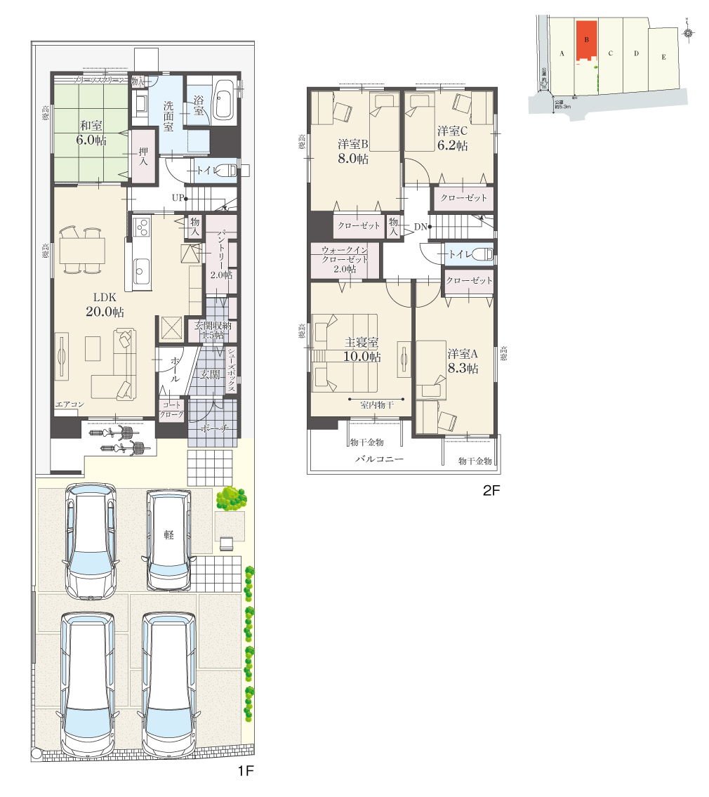 ・駐車台数は、区画図または各間取り図に表示の自動車サイズを想定しております。車種によっては駐車台数が異なる場合があります。