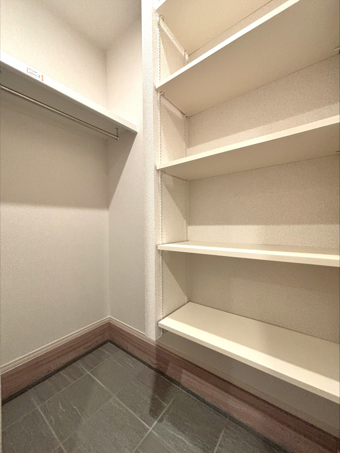 洋服や小物がしっかり収納できる大型の収納空間を確保しました。居室をすっきり保ち、より広さを感じていただけます。
