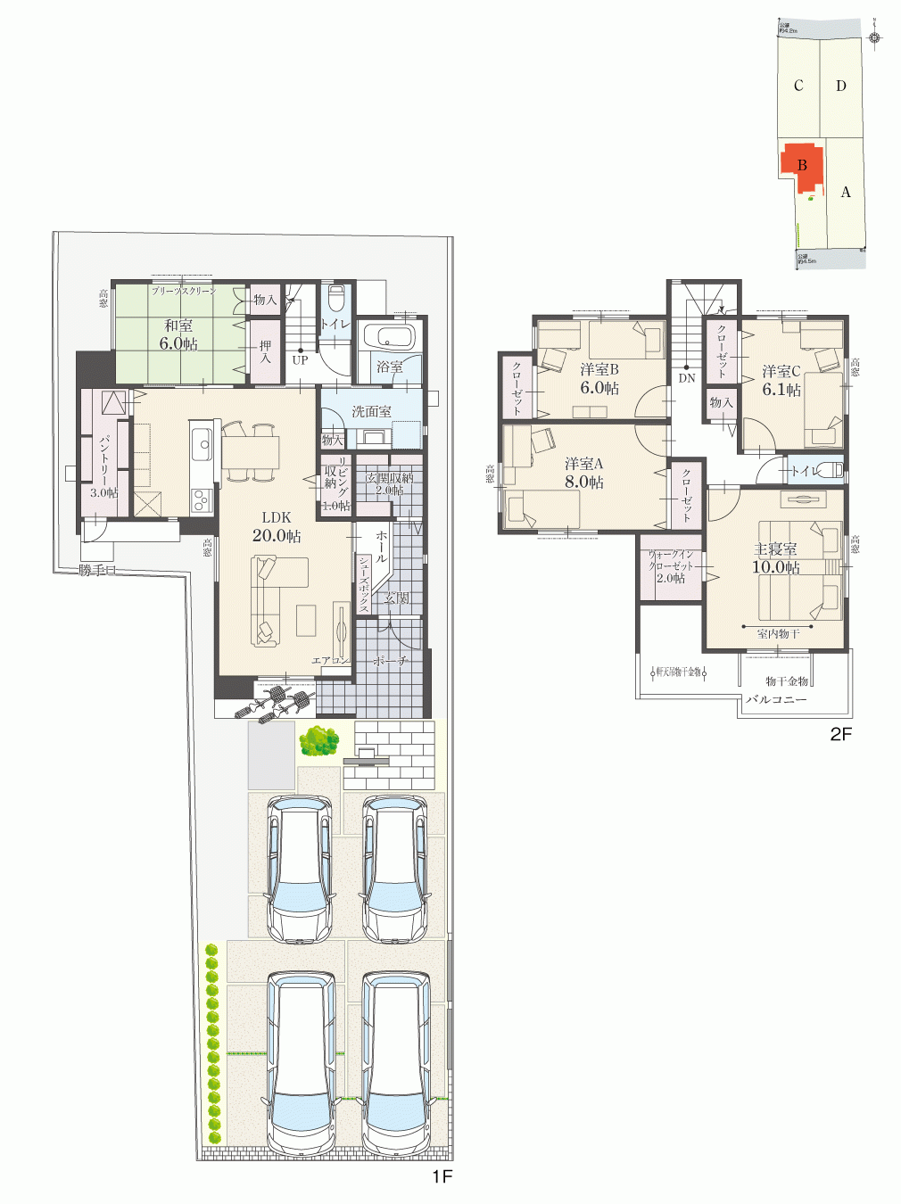 ・駐車台数は、区画図または各間取り図に表示の自動車サイズを想定しております。車種によっては駐車台数が異なる場合があります。