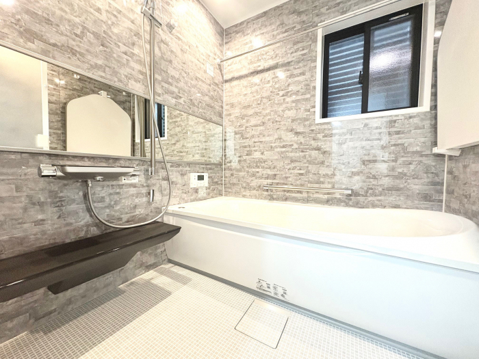 少し大きめ1717(1坪)サイズ。バリアフリー仕様のシステムバス。保温材付きの魔法びん浴槽。お掃除ラクラクほっカラリ床。