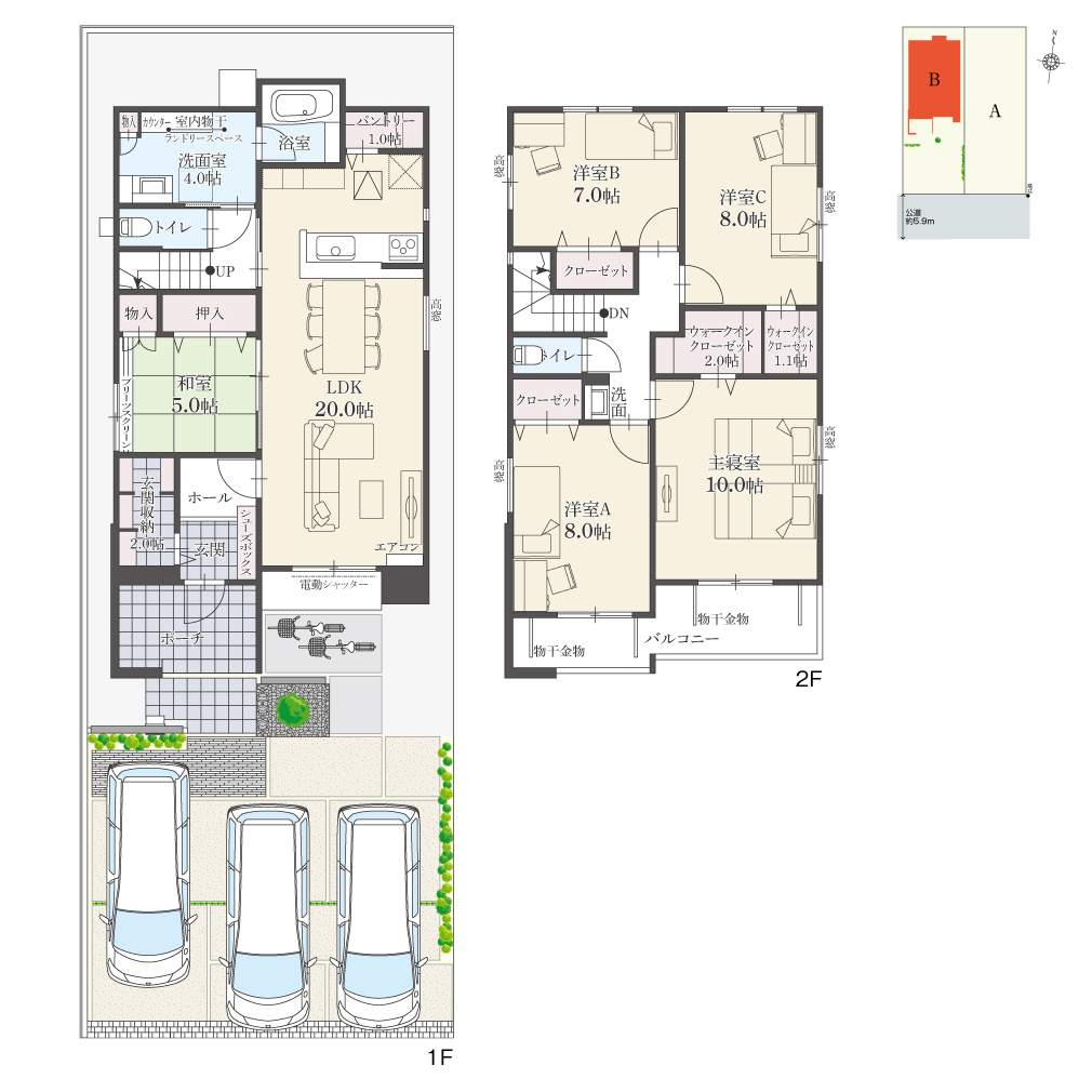 ・駐車台数は、区画図または各間取り図に表示の自動車サイズを想定しております。車種によっては駐車台数が異なる場合があります。