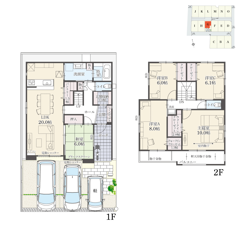 ・駐車台数は、区画図または各間取り図に表示の自動車サイズを想定しております。車種によっては駐車台数が異なる場合があります。