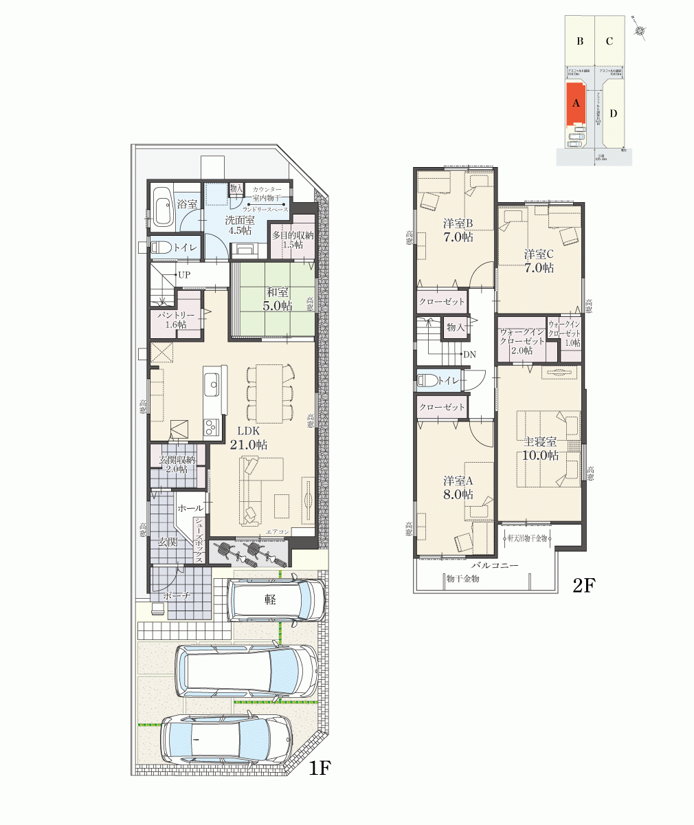 ・駐車台数は、区画図または各間取り図に表示の自動車サイズを想定しております。車種によっては駐車台数が異なる場合があります。