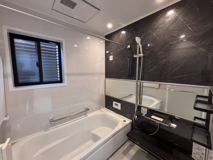 少し大きめ1717(1坪)サイズ。バリアフリー仕様のシステムバス。保温材付きの魔法びん浴槽。お掃除ラクラクほっカラリ床。