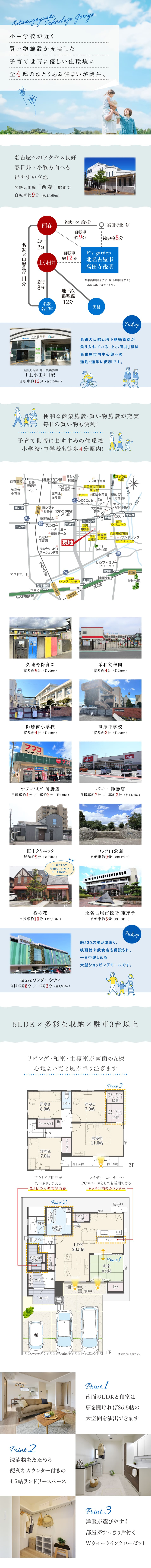 - 間取り:5LDK+ Wウォークインクローゼット+ 玄関収納+ リビング収納+ パントリー+ ランドリースペース