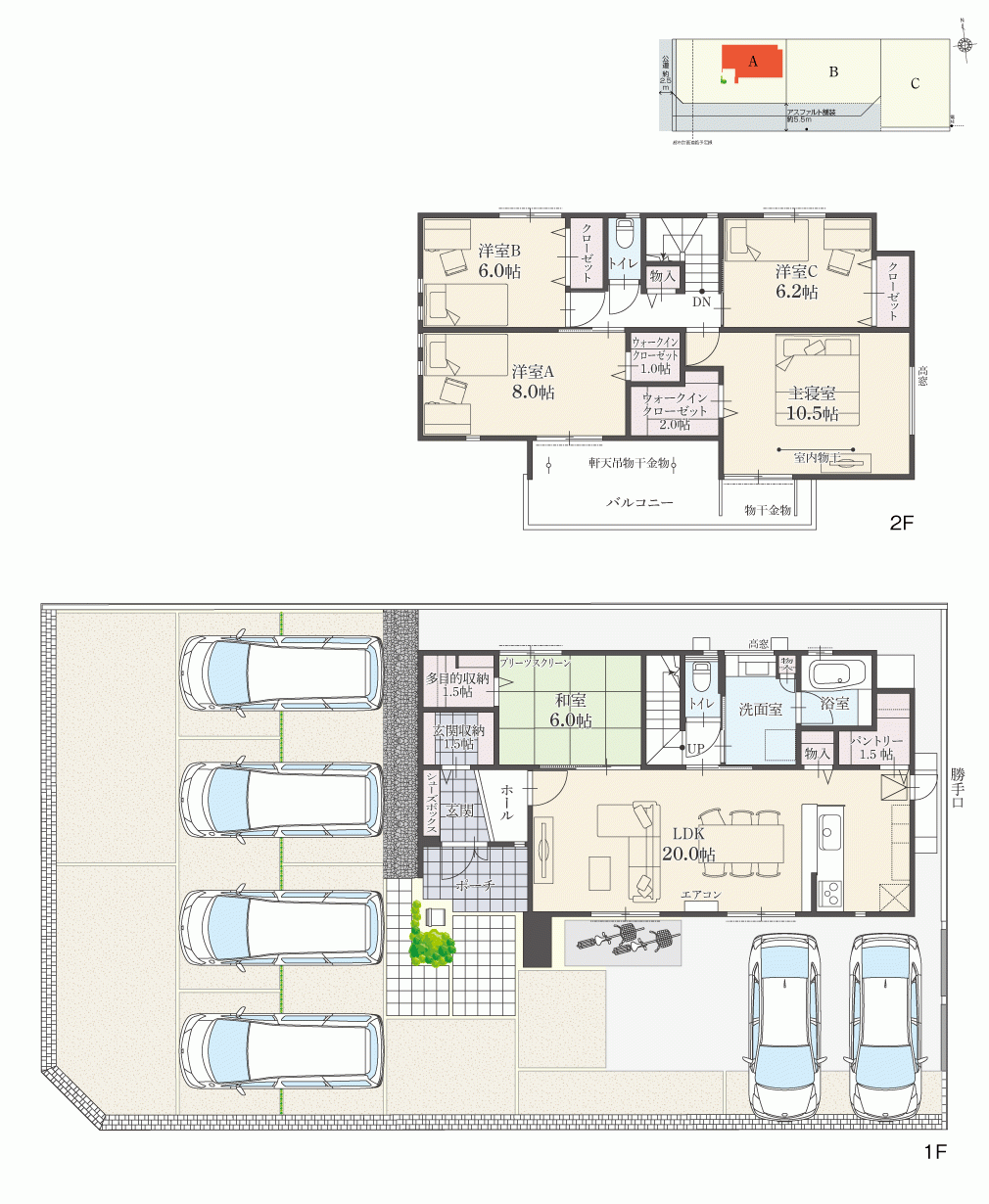 ・駐車台数は、区画図または各間取り図に表示の自動車サイズを想定しております。車種によっては駐車台数が異なる場合があります。