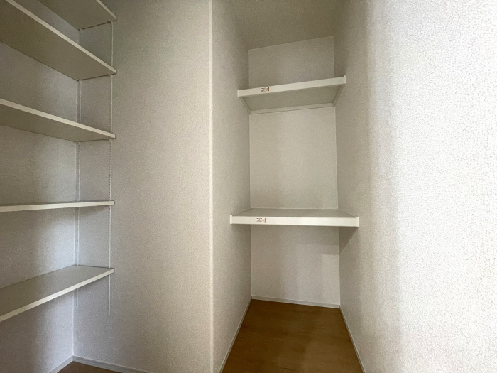 タオルや着替え、洗剤のストック品など何でも収納できる大きな物入。