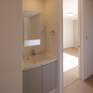 2階にセカンド洗面を設けることで、朝の洗面の混雑を緩和するとともに2階バルコニー等の清掃にも利用できて便利です。