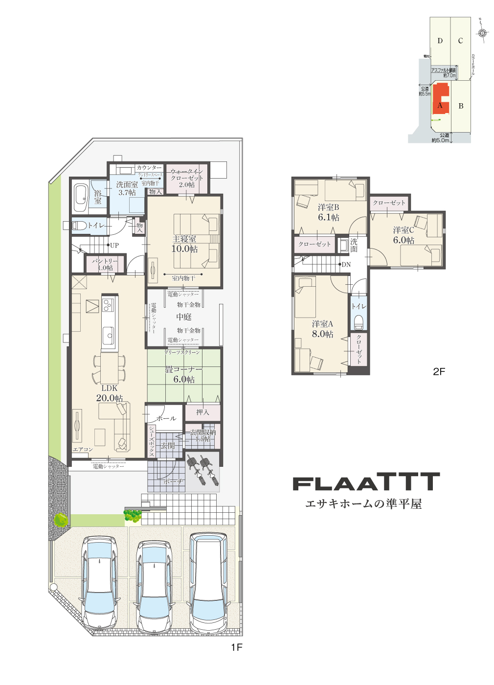 ・駐車台数は、区画図または各間取り図に表示の自動車サイズを想定しております。車種によっては駐車台数が異なる場合があります。