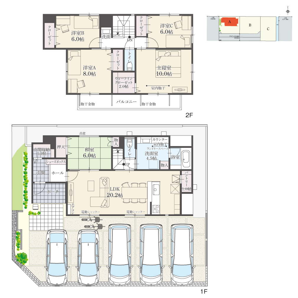 ・駐車台数は、区画図または各間取り図に表示の自動車サイズを想定しております。車種によっては駐車台数が異なる場合があります。