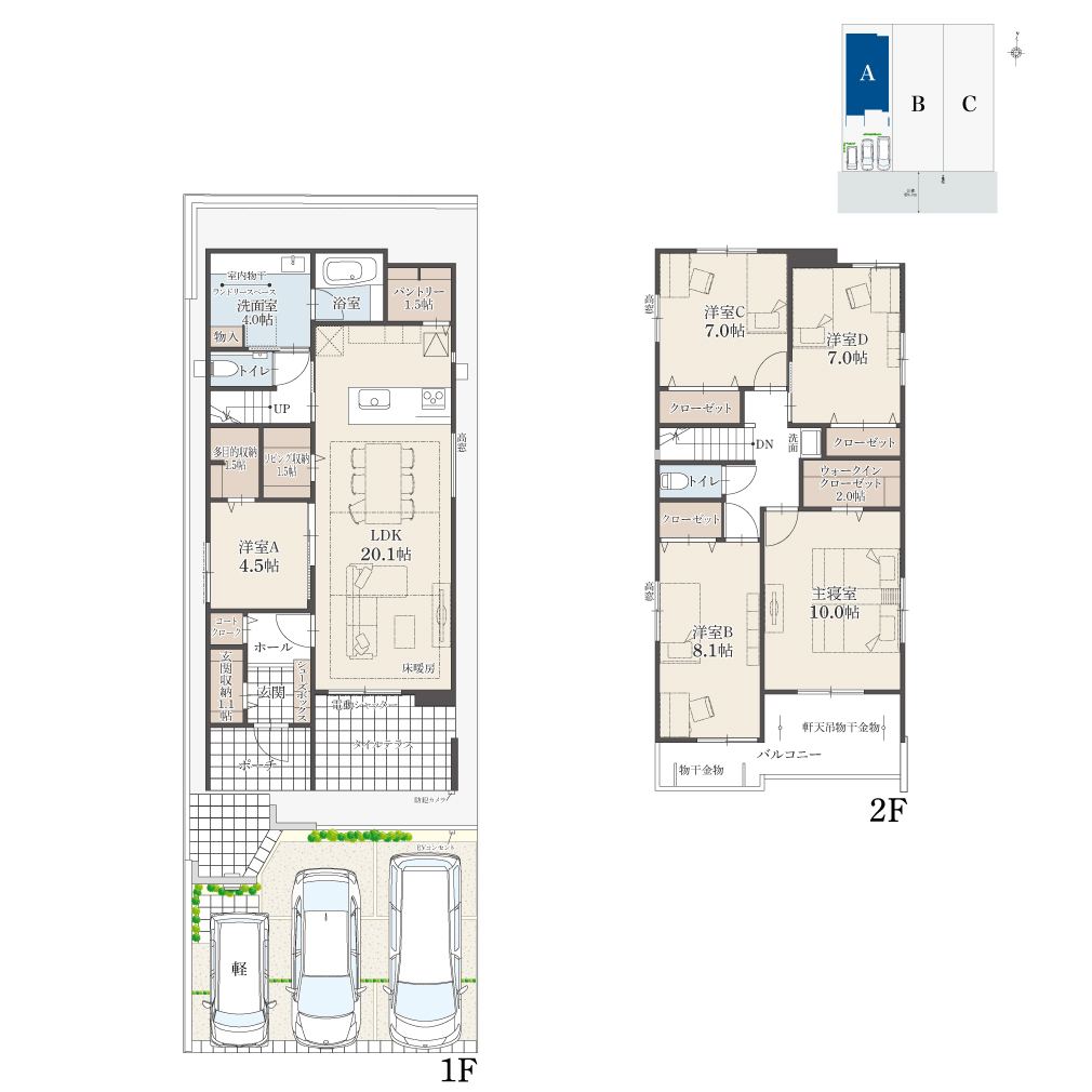 ・駐車台数は、区画図または各間取り図に表示の自動車サイズを想定しております。車種によっては駐車台数が異なる場合があります。