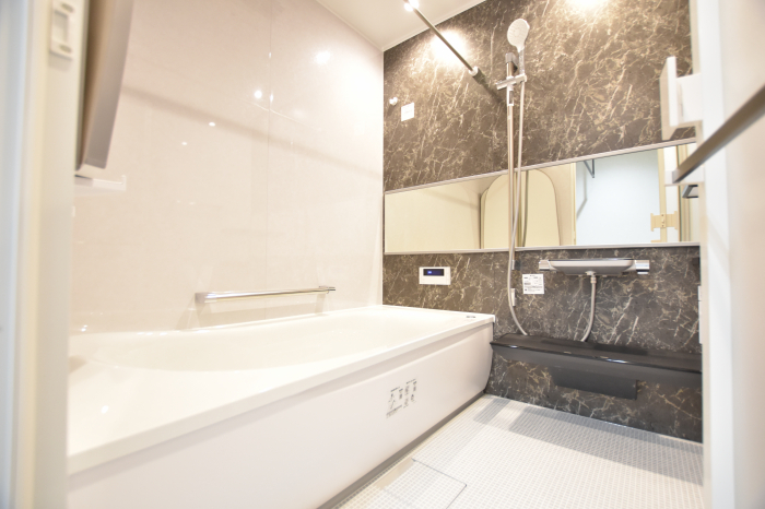 少し大きめ1717(1坪)サイズ。バリアフリー仕様のシステムバス。保温材付きの魔法びん浴槽。お掃除ラクラクほっカラリ床。