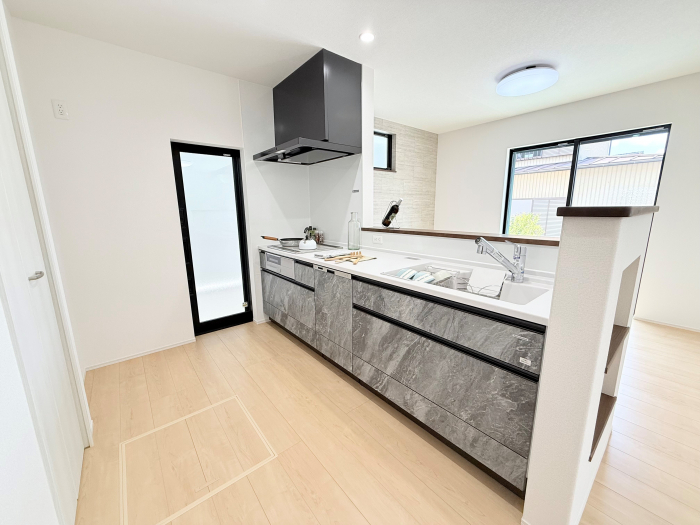 調理動線に沿った収納が可能で、スムーズに出し入れしやすくキッチンワークをより快適にします。大容量の収納も実現。引出しの底板もホーロー素材なので醤油染みなども水拭きで汚れが落ちます。