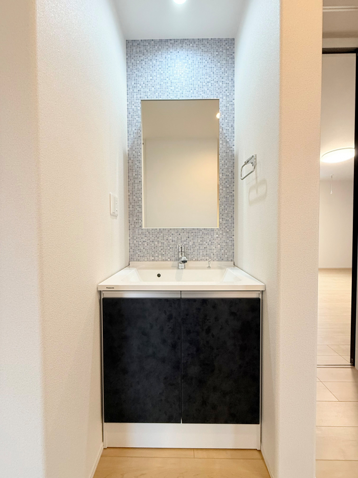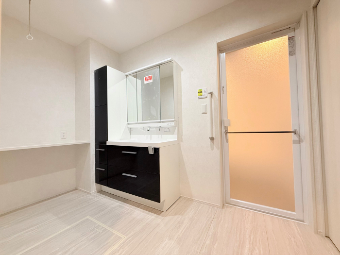 お掃除ラクラク、鏡の後ろにもたっぷり収納できるシャンプードレッサー。