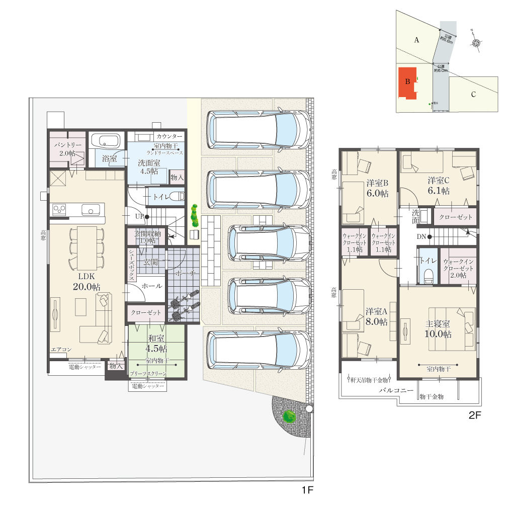 ・駐車台数は、区画図または各間取り図に表示の自動車サイズを想定しております。車種によっては駐車台数が異なる場合があります。