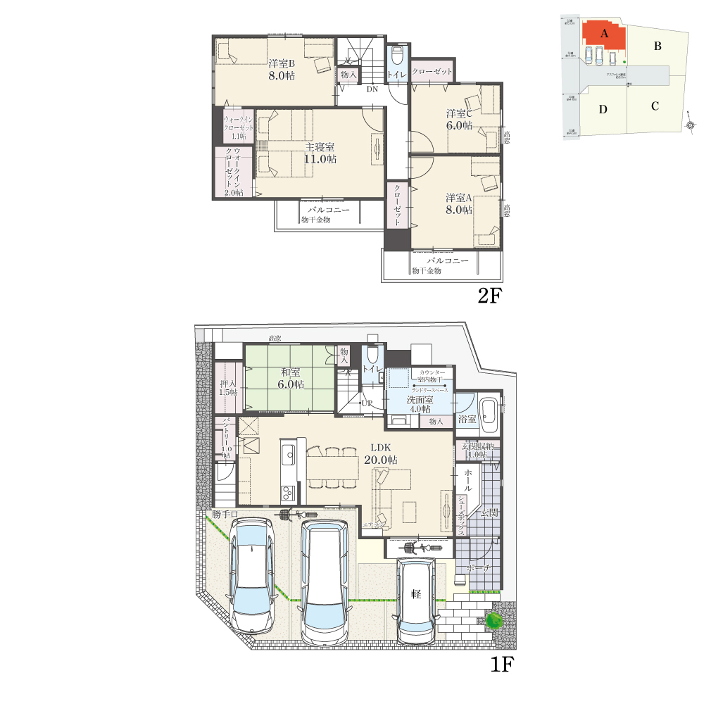 ・駐車台数は、区画図または各間取り図に表示の自動車サイズを想定しております。車種によっては駐車台数が異なる場合があります。