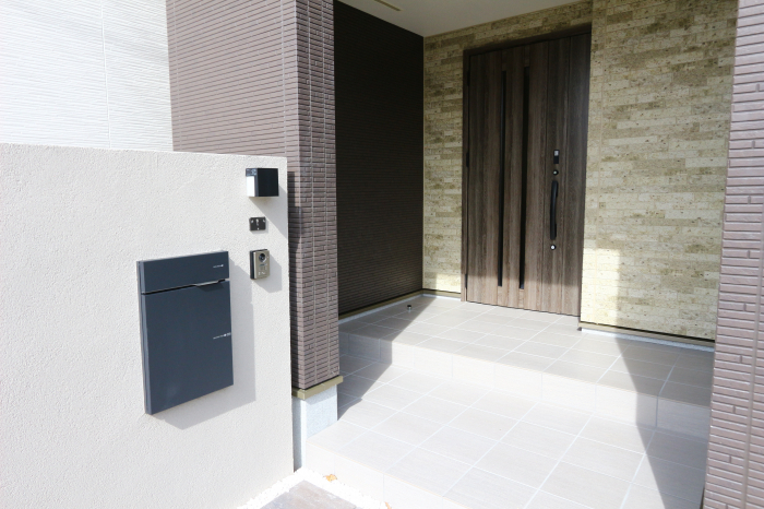 扉を閉めれば玄関はいつも綺麗。土間なのでベビーカーや砂のついたおもちゃもそのまましまえます。