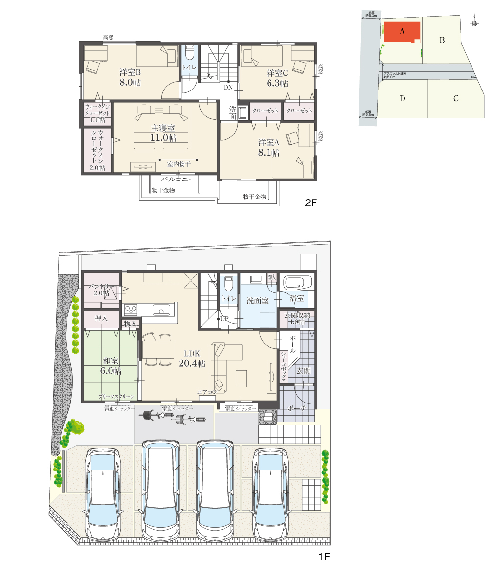 ・駐車台数は、区画図または各間取り図に表示の自動車サイズを想定しております。車種によっては駐車台数が異なる場合があります。