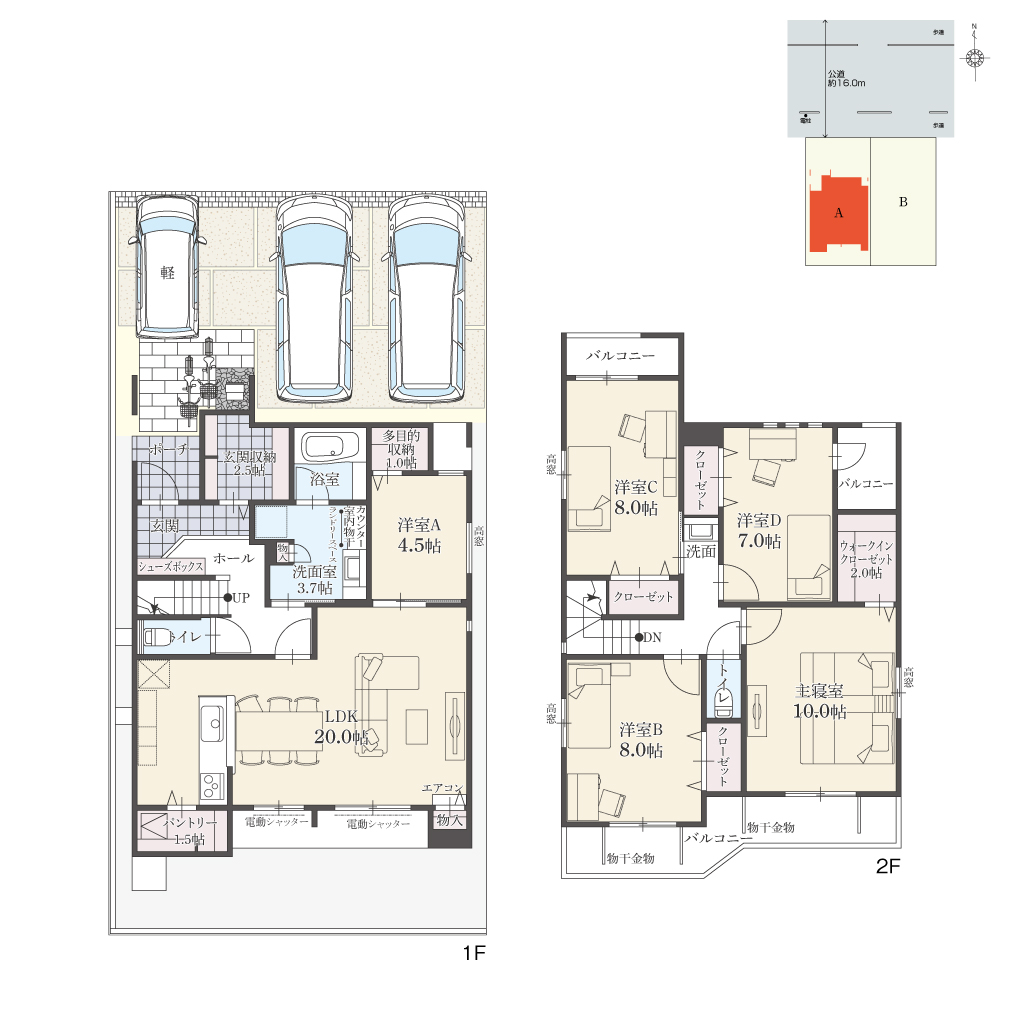 ・駐車台数は、区画図または各間取り図に表示の自動車サイズを想定しております。車種によっては駐車台数が異なる場合があります。