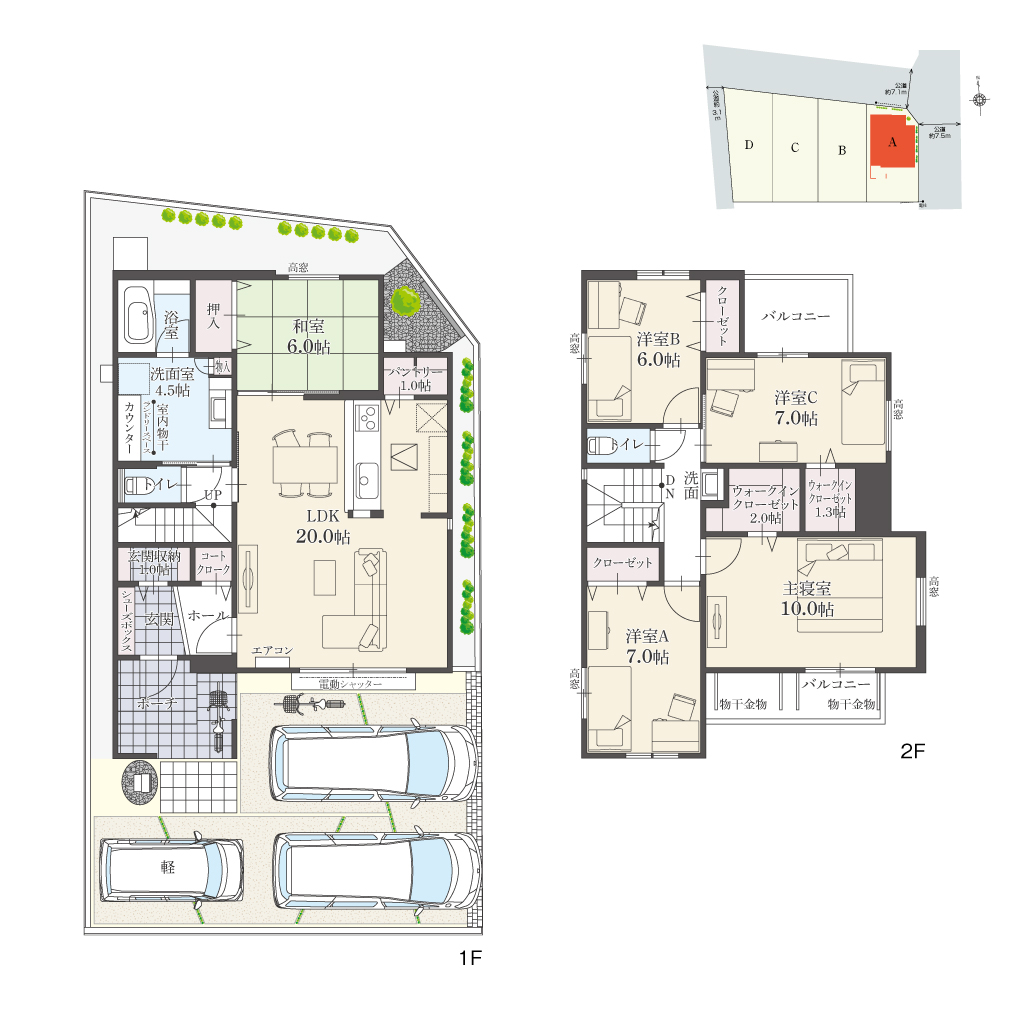 ・駐車台数は、区画図または各間取り図に表示の自動車サイズを想定しております。車種によっては駐車台数が異なる場合があります。