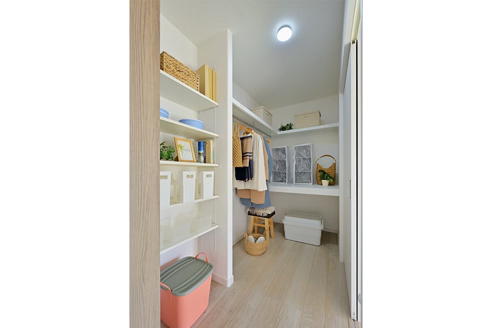 リビングがすっきり片付く。ファミリークローゼットのある家