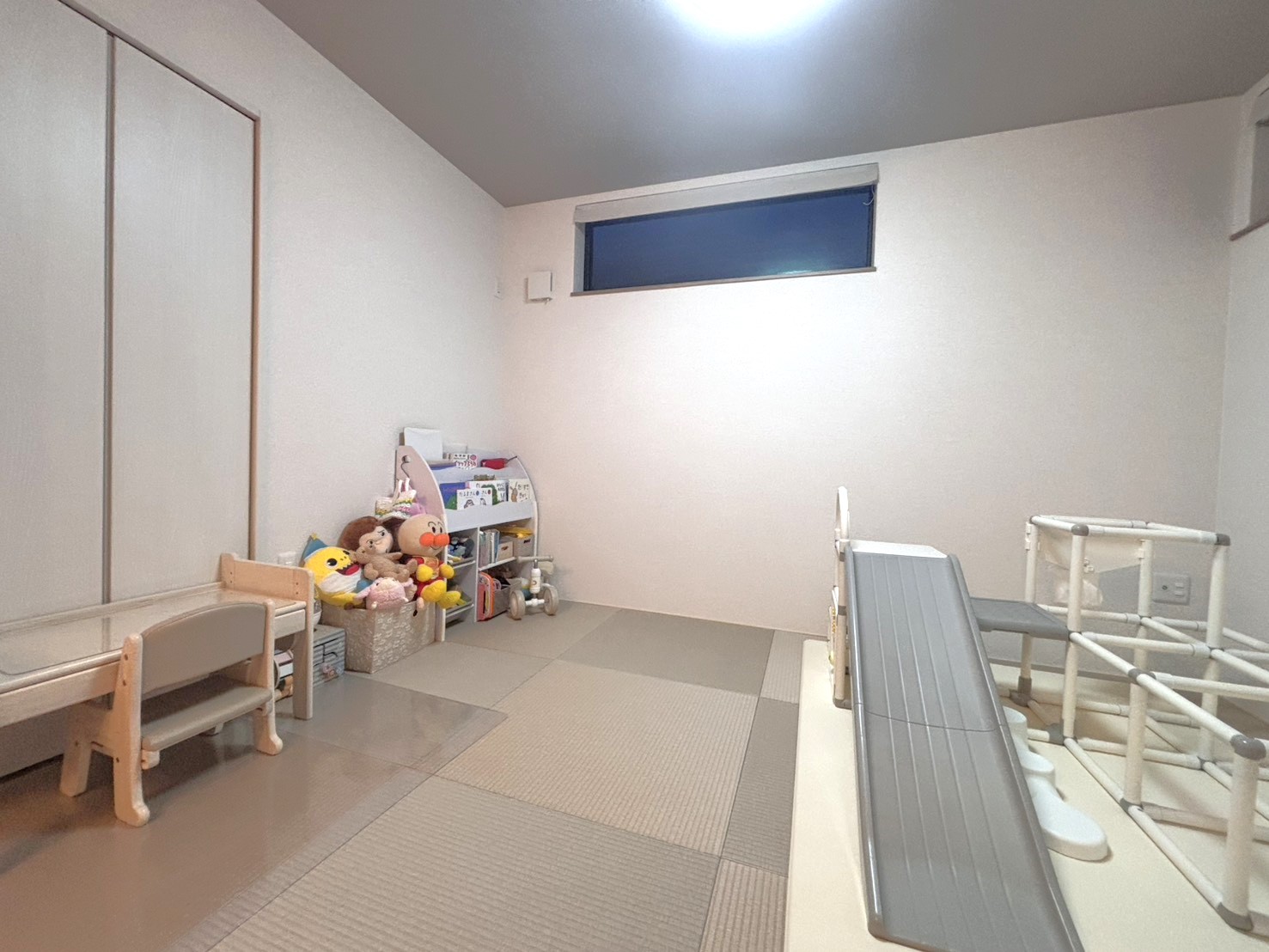 和室のお気に入りは、落ち着いたクールトーンの畳の色。シンプルで上品な雰囲気があって、どんなインテリアとも合わせやすいです。第二子が生まれた今も、この和室が大活躍。赤ちゃんを寝かせたり、長女を遊ばせたりできるので、家族の成長に合わせて柔軟に使える空間になっています。
