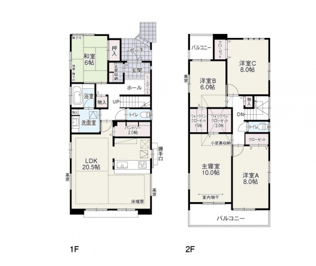 - 間取り:5LDK+ Wウォークインクローゼット+ 玄関収納+ パントリー