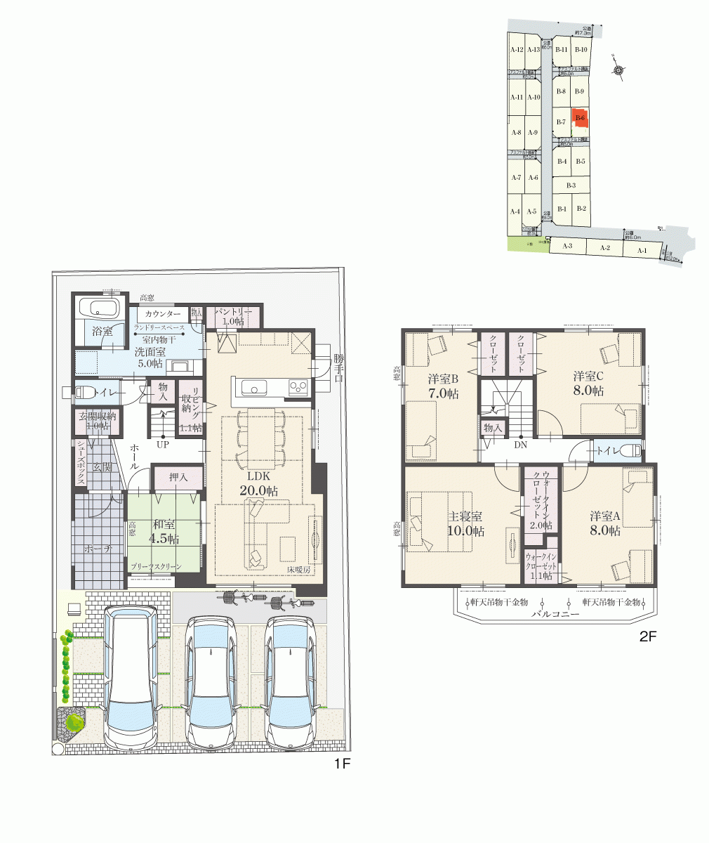 ・駐車台数は、区画図または各間取り図に表示の自動車サイズを想定しております。車種によっては駐車台数が異なる場合があります。