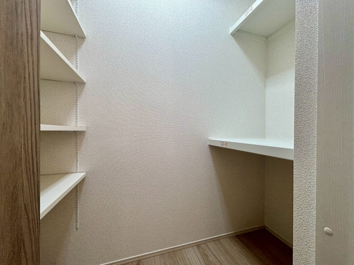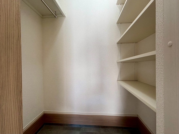 タオルや着替え、洗剤のストック品など何でも収納できる大きな物入。