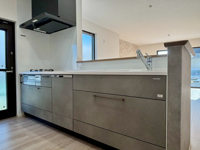 目地の少ない大判パネルでお手入れ簡単。キズに強く、がんこな油汚れもサッとひと拭き。