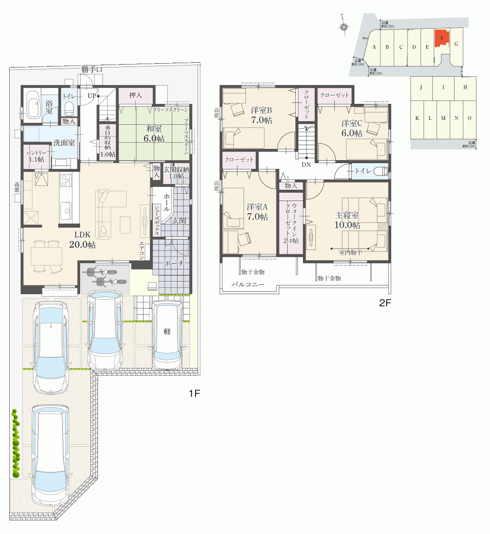 ・駐車台数は、区画図または各間取り図に表示の自動車サイズを想定しております。車種によっては駐車台数が異なる場合があります。